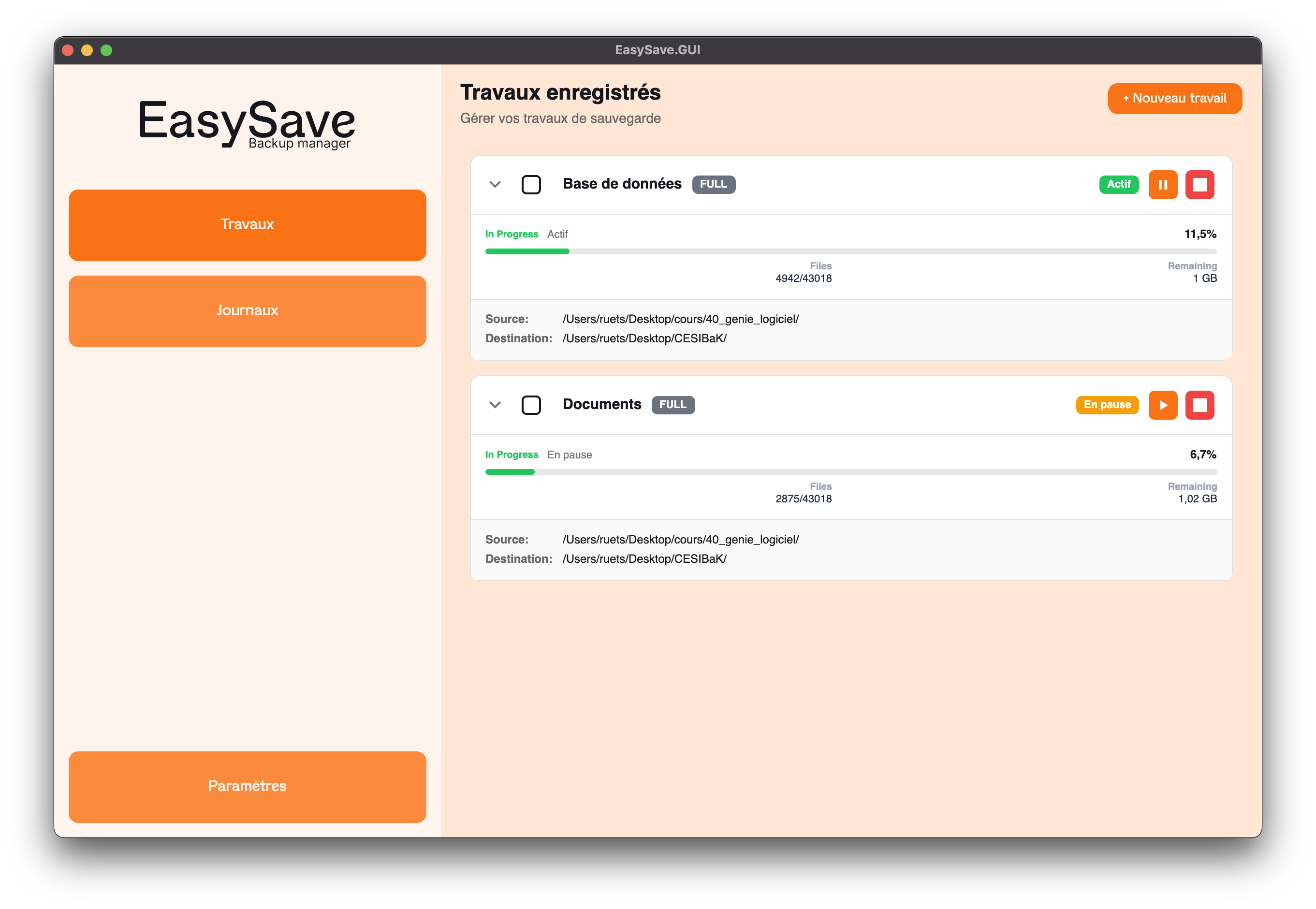 EasySave offre une gestion complète et sécurisée des sauvegardes :